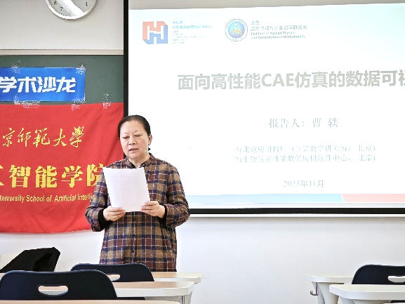 京师智能学术沙龙第十八期于11月3日下午2:00在昌平校区二教301成功举办。本次讲座邀请到了北京应用物理与计算数学研究所研究员、中物院高性能数值模拟软件中心可视化团队负责人曹轶老师作为主讲嘉宾,为我们分享了主题为“面向高性能 CAE 仿真的数据可视化”的学术讲座。此次沙龙为同学们提供了一个学习前沿技术的机会,邀请人骆岩林老师主持本次沙龙。