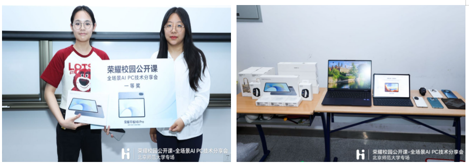 活动中三轮抽奖环节让现场气氛更加热烈,同学们纷纷加入荣耀俱乐部,和荣耀的专家老师们保持进一步的探讨交流。最后,在热烈的掌声中,“智创未来”第十五期荣耀校园公开课-全场景AI PC技术分享会圆满落下帷幕。