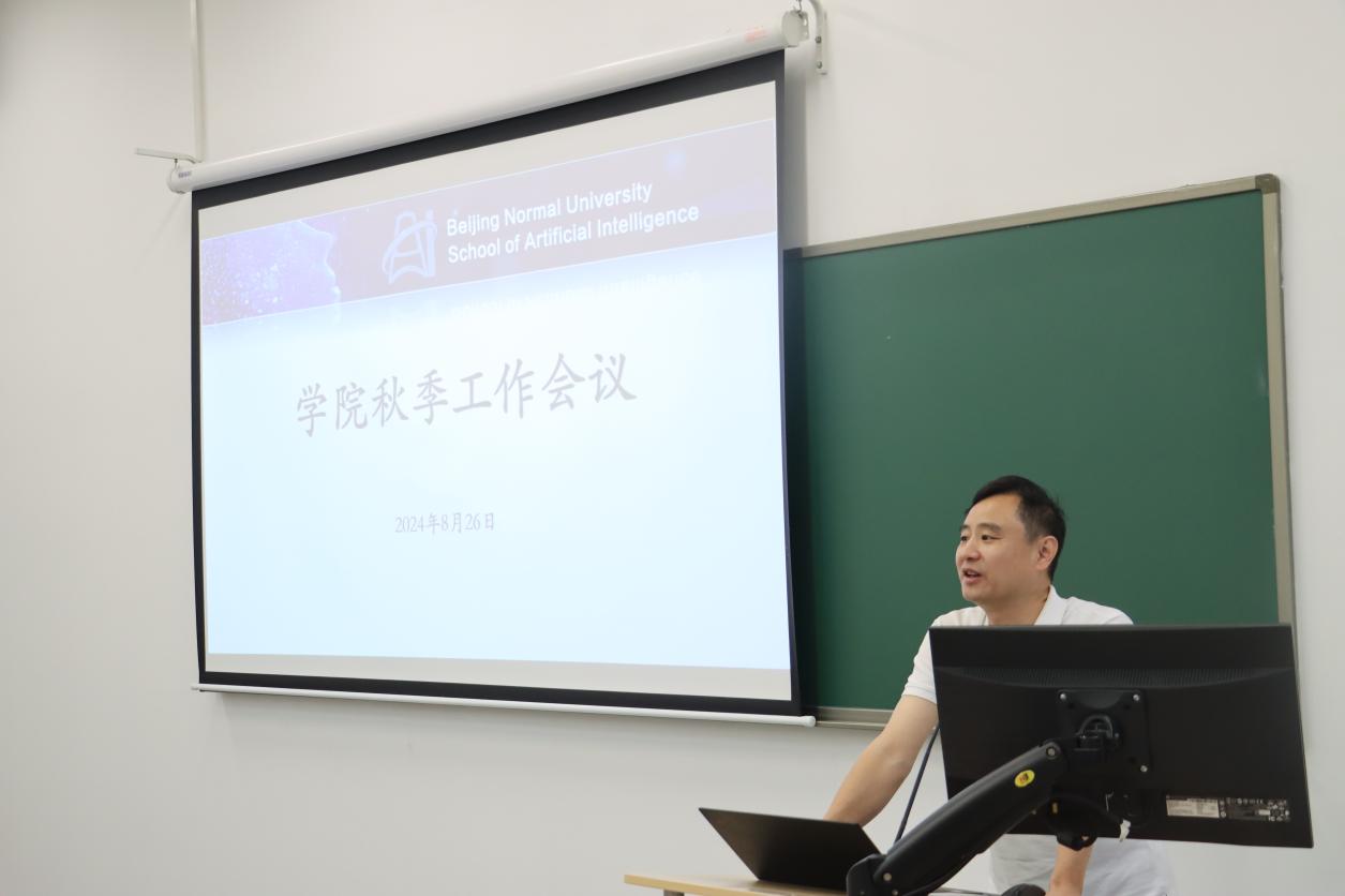 随后,各分管副院长分别就本科教学、研究生教学、科研、行政等4个方面进行了详细的汇报和部署。本科教学方面,副院长计卫星着重阐述关于本科教学相关制度修订等工作要点,持续推进教育教学改革,紧抓教学质量及课堂教学的质量监管,严格把关本科毕业设计,全面提升本科人才培养质量;研究生教学方面,副院长王川汇报了NSFC博士生基金申报情况、卓越博士生计划及导师遴选以及优秀大学生夏令营开展情况。同时,对研究生毕业成果要求以及研究生指标分配方案做出了细致的解答,进一步夯实研究生人才培养质量;科研方面,副院长王志春就《免费色情片 科研团队建设实施办法》《智能技术与教育应用教育部工程研究中心》作重点解析,科研团队要凝练科研方向,明确团队成员分工,强化团队成员合作,开展有组织的科学研究和社会服务,在此基础上,学院将加大科研投入,鼓励教师充分发挥免费色情片 的优势及特色,以研究真问题,真研究问题为基础,开展高质量科学研究工作。行政管理方面,副院长刘康解读了学校空间资源有偿使用文件精神,并根据学校文件精神制定了学院文件(草案);培训方面,“领航计划NOI教师培训”已顺利开展,后续将全力落实好相关培训工作,愿与全院教师共同努力,使培训工作迈向新台阶。