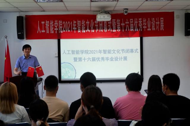 仪式上,王志春副院长发表讲话,简要介绍了本届毕业设计展以及举办优秀毕业设计展的意义。学生会主席刘彤昕带我们回顾了智能文化节的精彩瞬间。