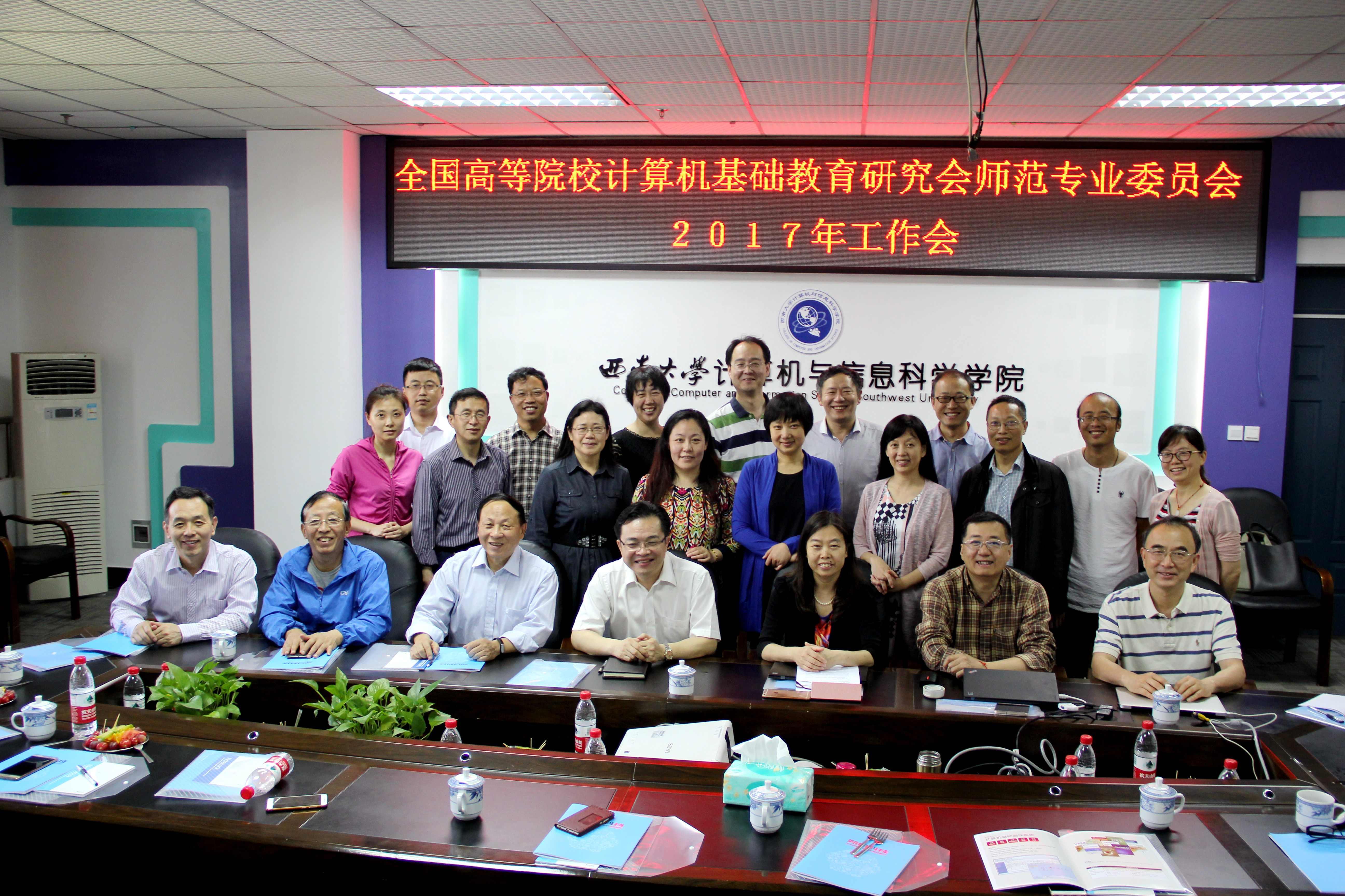 为进一步落实国务院办公厅颁发的《关于深化高等学校创新创业教育改革的实施意见》文件精神,促进创新创业教育内容在“非计算机专业计算机基础教育课程体系”中的融合,进一步推动计算机基础课程教学改革与实践的深入开展,同时加大师范生免费教育教学改革力度,推进高等学校教师教育示范课程建设工作深入开展以及师范院校间的教学研讨与交流,全国高等院校计算机基础教育研究会师范专业委员会和重庆计算机学会计算机基础教育专业委员会于2017年5月12-14日在重庆召开2017年工作会议。会议由西南大学计算机与信息科学学院承办,由师范专业委员会邹显春副主任主持,师范专委会20余位理事出席了大会。