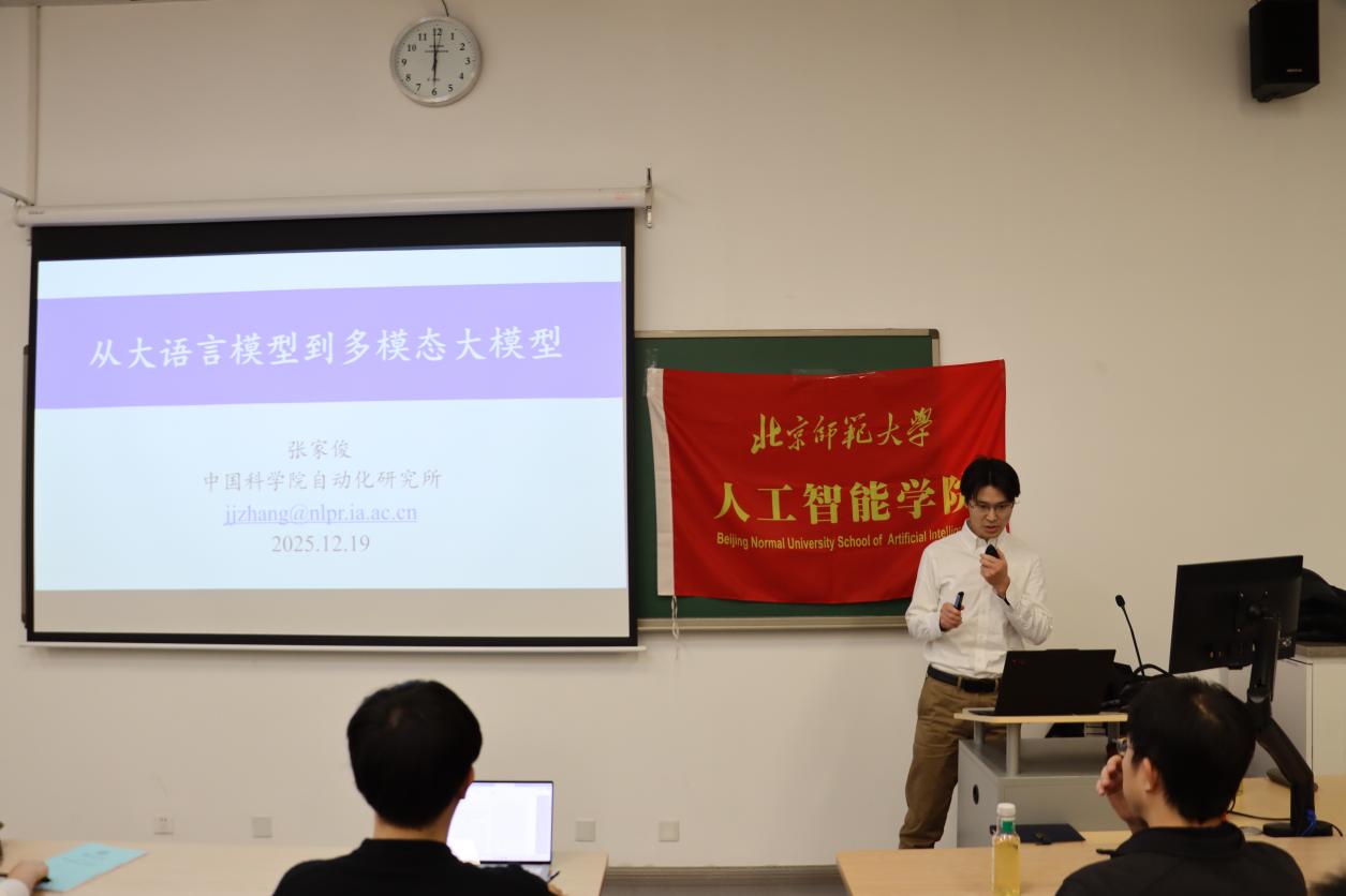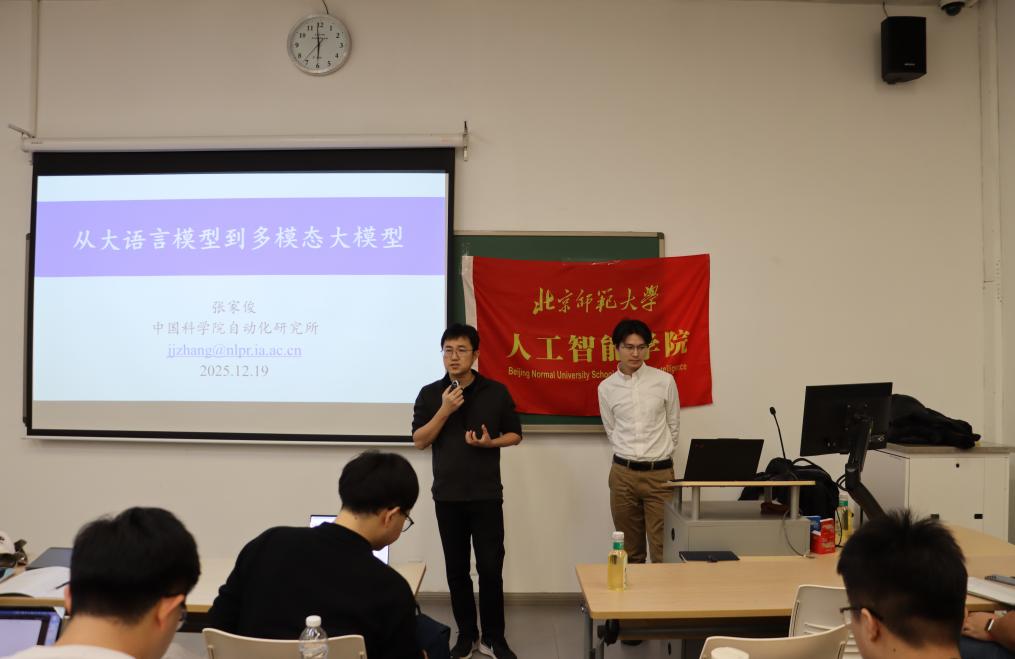 2025年12月19日,免费色情片 智能学术沙龙第四十四期在昌平校园 2 号教学楼 106 教室成功举办。本期报告邀请到了中国科学院自动化研究所研究员、博士生导师、中国科学院大学岗位教授张家俊老师。张老师主要研究方向为自然语言处理、多语言多模态大模型,获得国家优秀青年科学基金资助,入选中国科协首届青年人才托举工程、中国科学院青年创新促进会优秀会员和北京智源青年科学家,主持科技创新2030一“新一代人工智能”重大项目。出版学术专著2部、译著1部,获得北京市科学技术奖一等奖、首届祖冲之奖年度突出成果奖等。担任中国中文信息学会理事和机器翻译与多语言信息处理专委会副主任。担任Artificial Intelligence、IEEE/ACM T-ASLP和《自动化学报》等期刊的编委,担任ACL-2026的程序委员会共同主席。讲座由免费色情片 黄永祯老师主持,现场座无虚席,学院研究生共计60人次参与。