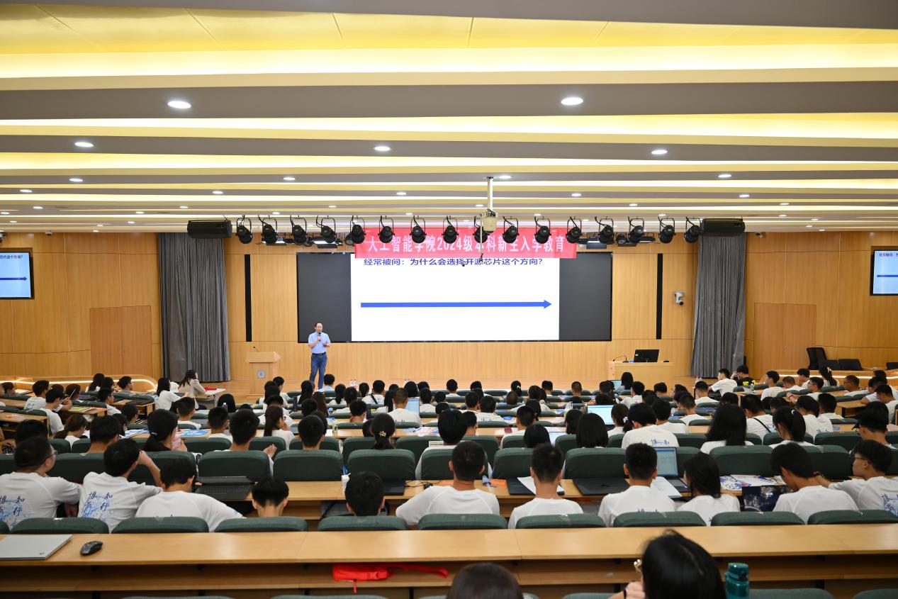 包云岗教授从精神力量的重要性、来源及提升方法三个维度,为新生们带来了深刻启示。他强调,精神力量是个人成长的核心动力,对于未来在人工智能领域的探索尤为重要。包教授通过分享自身经历及行业案例,阐述了设立明确目标、把握事物发展规律对于培养精神力量的重要性。他鼓励新生们要勇于设定并追求自己的梦想,同时注重培养自我控制和自我约束的能力。包教授还提出了“探寻规律、主动感知、刻意练习、实践检验”的四步法。他希望通过这些方法,能够帮助新生们在复杂多变的未来世界中保持坚定的信念和持续的动力。