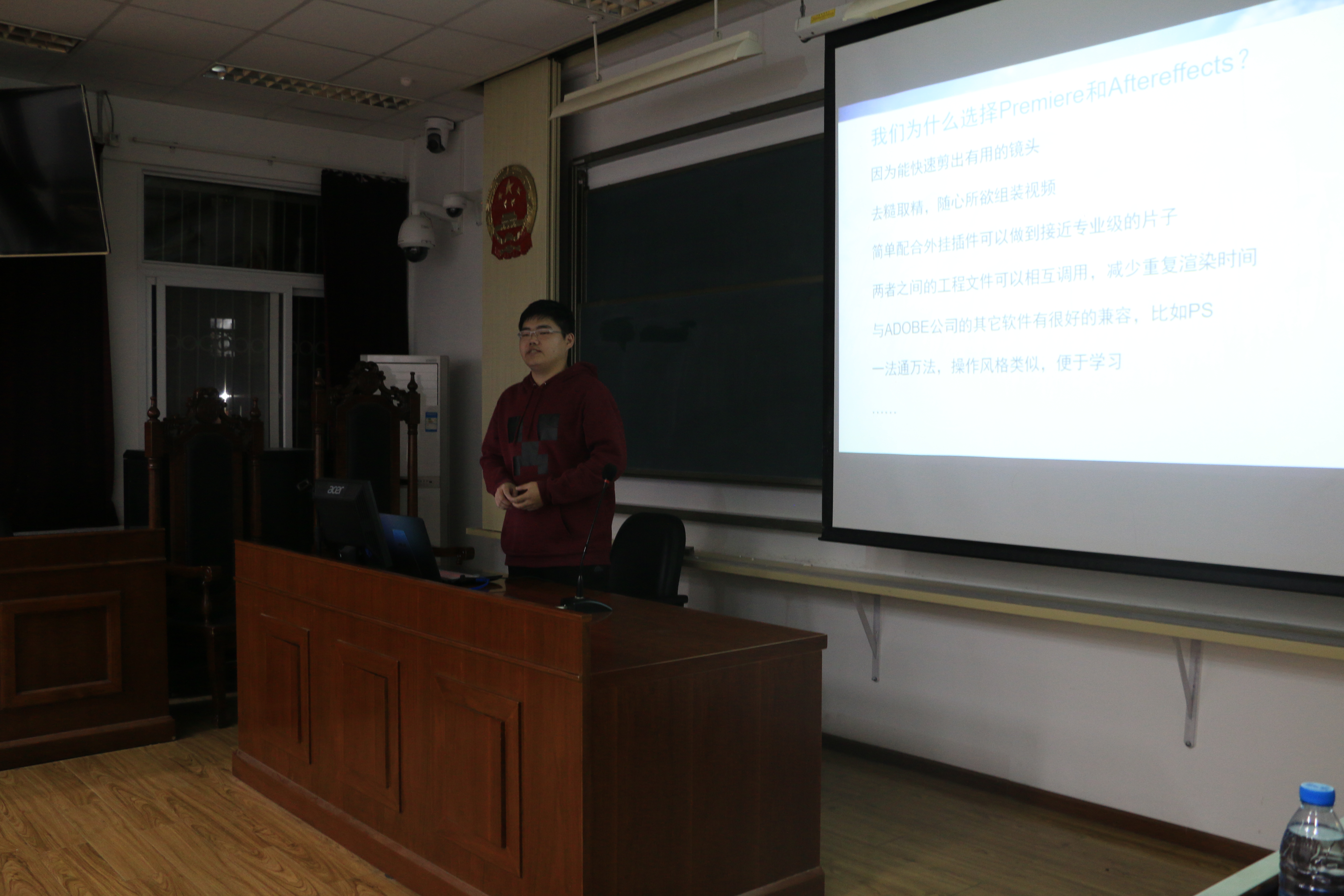 朱黎首先用两个制作精良,精彩绝伦的小短片瞬间提起了大家对视频制作的兴趣。虽然Premiere Pro和After Effect在使用上有一定难度,但他还是用具体操作以及耐心的讲解使大家学会了两款软件的基本用法。通过介绍两款软件的不同之处,大家也对两款软件的应用领域以及本质区别有了更深一层次的认识。