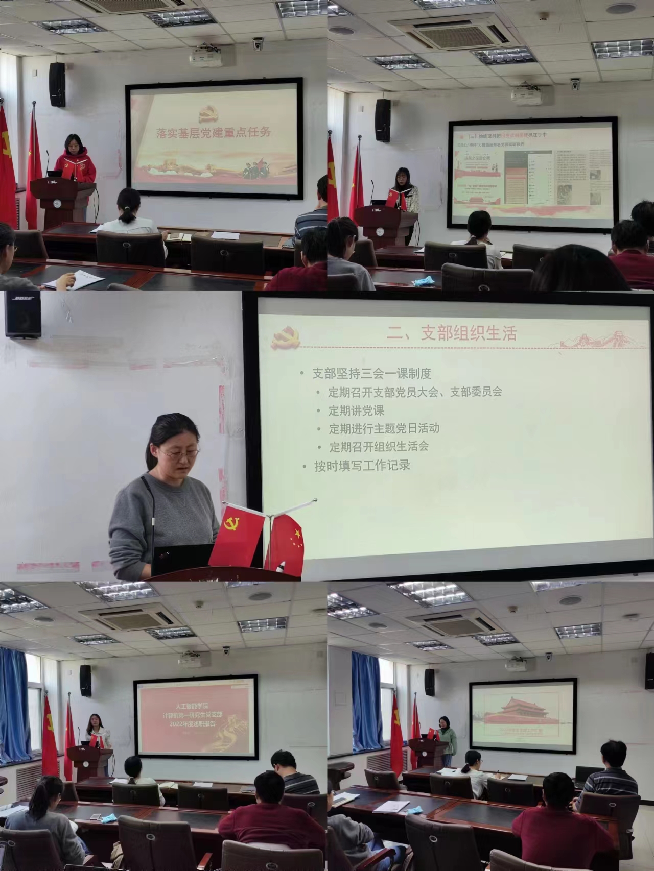 本次现场述职的党支部有计算机教工党支部、电子第一研究生党支部、电子第二研究生党支部、计算机第一研究生党支部和计算机第二研究生党支部。计算机教工党支部注重党建与业务结合,从科研、教学、服务等方面发挥了党支部的战斗堡垒作用。学生党支部也围绕学生党支部责任,汇报履职尽责的情况。