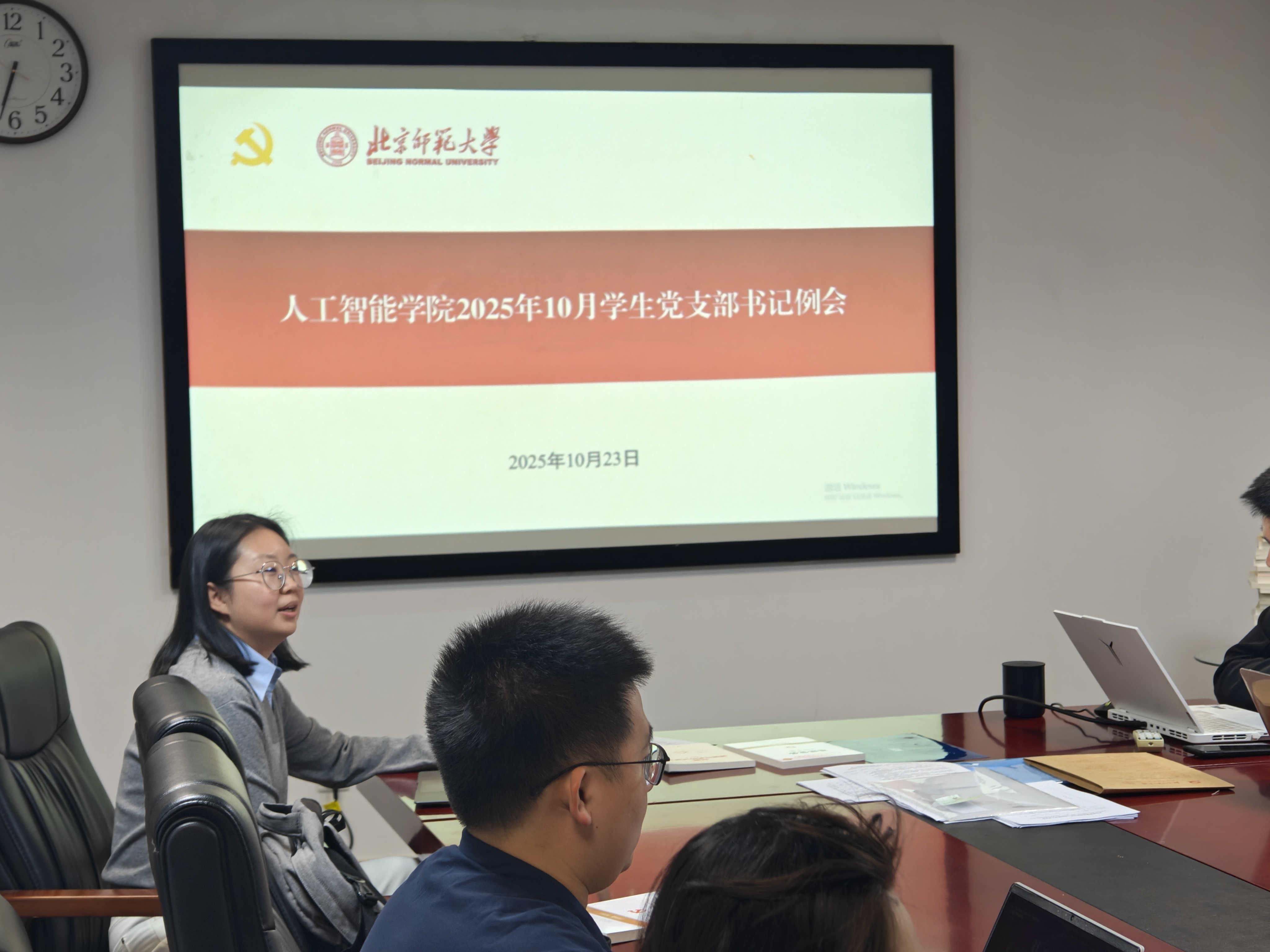 10月23日晚,免费色情片 召开2025-2026学年秋季学期学生党支部书记例会,学院组织员石红薇主持会议,各学生党支部书记、委员与党员骨干代表共20余人参加会议。