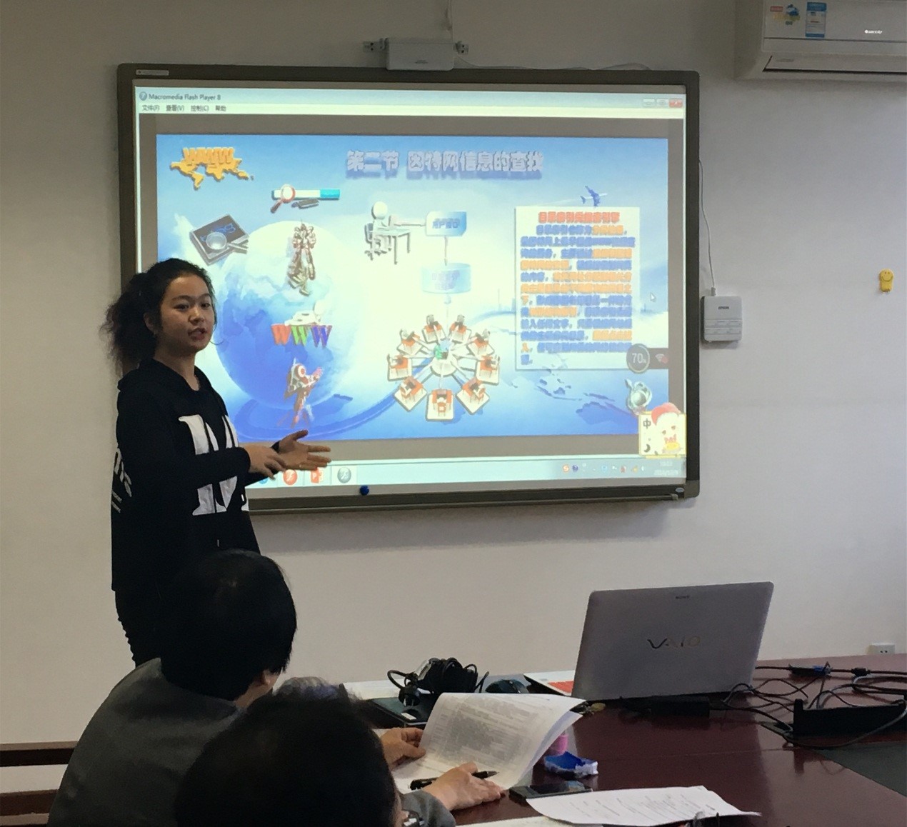 曾文艺、段福庆、尹乾等7位老师作为评委。同时,我们还要邀请到了来自三帆中学的北京市特级教师曾路老师作为特邀评委参加此次活动。比赛由教案、模拟授课、既席演讲和提问四个环节构成。四名选手选用了自己在实习中精心准备的教案,授课内容分别“搜索引擎使用技巧”、“引导动画引导层的操作”、“photoshop图层蒙版的应用”。选手们的表现各有特色,有的幽默风趣,有的严谨端庄,有的亲切自然。评委老师们也都热烈地评议,指出选手在教学上值得注意和改进的地方。最后,陈奕哲同学摘得桂冠。 通过此次总结会和比赛,同学们为自己的教育实习活动画上了圆满的句号,也为将来走向真正的教师岗树立了更多的信心。
