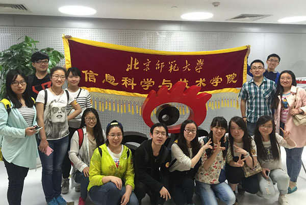 最后,同学们集体到新浪大标志处合影留念,工作人员向同学们赠送了小纪念品。大家愉快道别,走近名企之新浪站顺利结束。