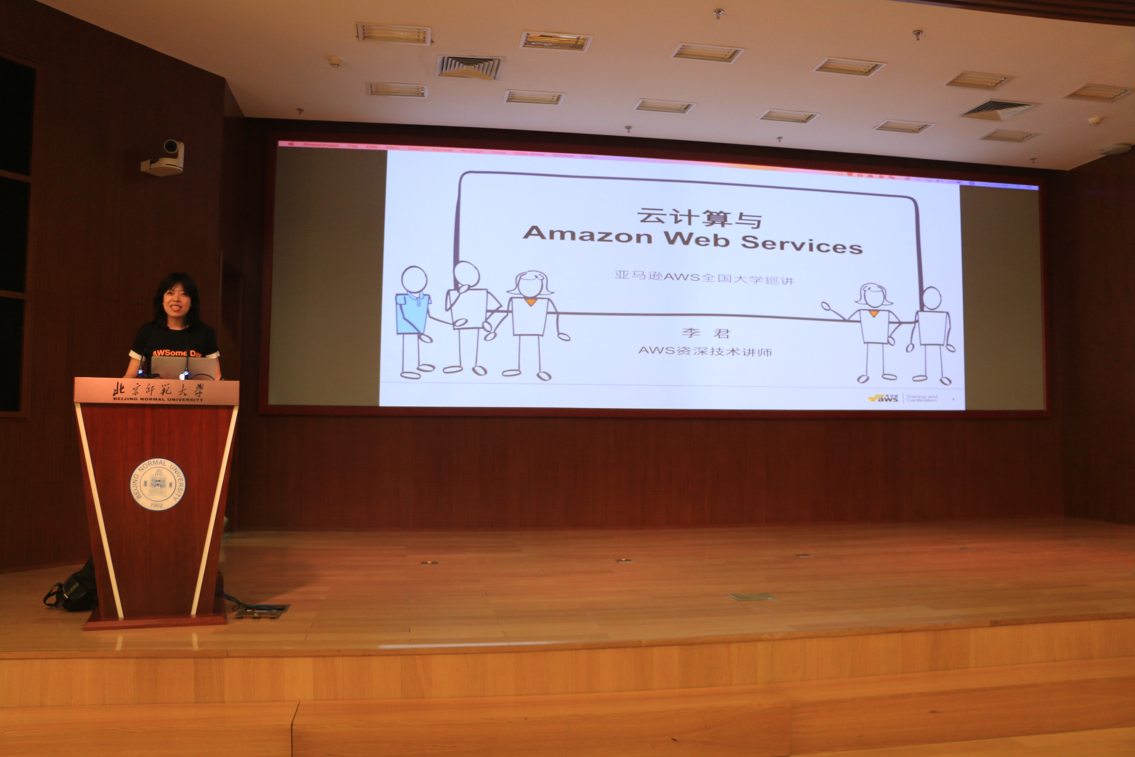 信息科学与技术学院于5月2日晚,在京师学堂举办了“创E无限”第十二届信息文化节第一场学术论坛“大展云图—2017亚马逊AWS全国高校云计算高级讲座”。本次讲座由信息科学与技术学院主办,清华大学出版社和亚马逊AWS承办。具有十多年IT行业从业经验的资深技术讲师李君老师应邀为同学们带来了云计算技术的精彩报告。