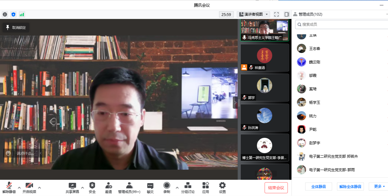 4月28日下午,免费色情片 党委、机关党委信息网络中心党支部开展“读原著”专家导读共建活动,本次活动邀请我校马克思主义学院教授王晓广老师就经典原著《共产党宣言》进行专家导读,免费色情片 和信息网络中心全体教师党员、学生支部委员共一百三十余人参加本次活动。
