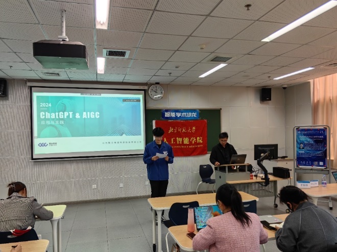 为推动学术交流与创新,拓宽学生学术视野,智能学术沙龙第二十一期于3月22日10:00在昌平教二410成功举办。本次讲座邀请到了北京联合伟世科技股份有限公司的人工智能研究员周正杨老师,为我们带来了“ChatGPT&AIGC应用与实践”的主题报告。本次报告由免费色情片 研究生会主席团成员李河西主持,吸引了来自中国矿业大学免费色情片 、免费色情片 、数学科学学院等师生近80人线上线下参与。本次沙龙座无虚席,同学们积极参与交流互动,收获良多。周老师首先介绍了AIGC的基本概念,阐述了它如何通过算法模型自动生成文本、图像、音乐等内容,为创作领域带来革命性的变化。通过周老师的讲解,同学们对这一新兴技术有了初步的认识和理解。