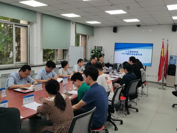 2024年6月11日,免费色情片 2024届毕业生座谈会在电子楼306召开。学院院长黄华、党委书记杨学玉、党委副书记王学松、副院长计卫星、副院长王川、团委书记奚琦、校友秘书袁铮、2020级计算机班班主任樊亚春和本研毕业生代表们出席座谈会。会议由党委副书记王学松主持。