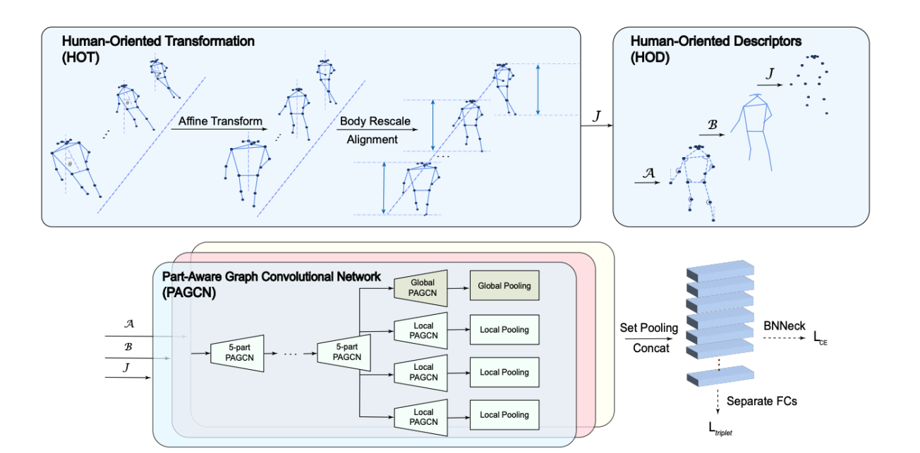 基于姿态的步态识别,是一种通过人体行走姿态进行生物识别的技术,具有广泛的应用场景。当前基于姿态的步态识别面临着严重的泛化性问题,该研究提出了一种基于姿态的步态识别统一框架GPGait。该框架包含了以人为中心的数据变换(HOT),人体结构的多类特征描述(HOD),通过HOT和HOD得到具有判别性的统一特征。同时为进一步提取细粒度步态特征,提出了人体部位感知图卷积网络(PAGCN),通过掩膜操作,使模型关注更加细粒度特征的提取和学习。通过在四个公共数据集 (CASIA-B、OUMVLP、GREW和Gait3D) 的实验,验证了所提出GPGait框架的有效性。