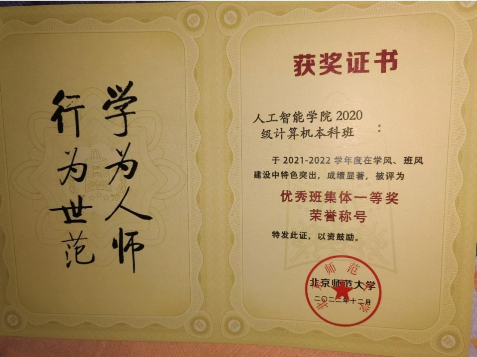 2、2021-2022学年度优秀班集体(一等)