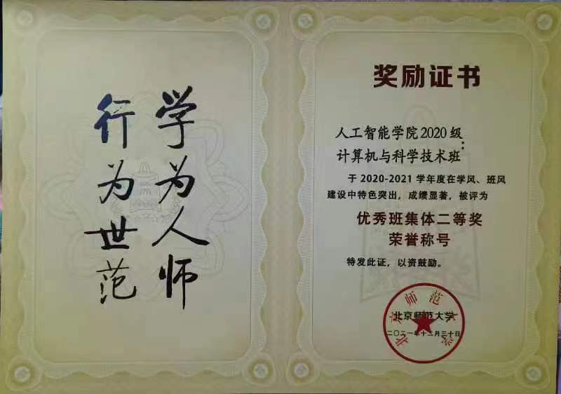 1、2020-2021学年度优秀班集体(二等)
